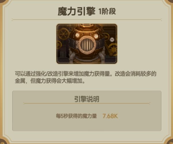 升级引擎消耗大量金属,可以大幅度增加魔力获得量。