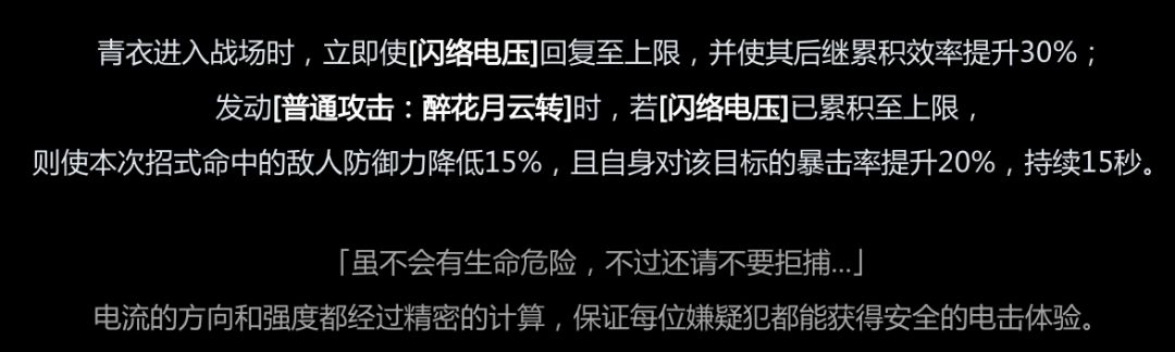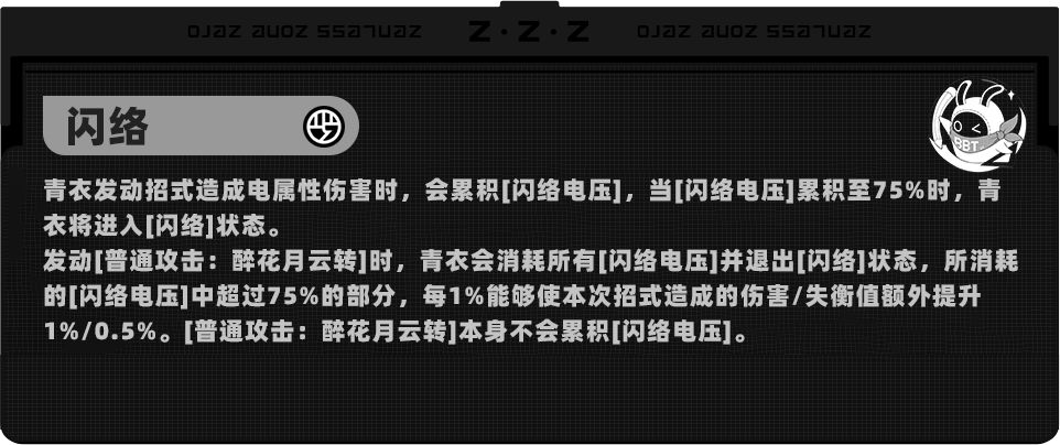 增加青衣入场时的启动速度,并增加「闪络」值的堆叠效率,对游玩手感有较大优化。