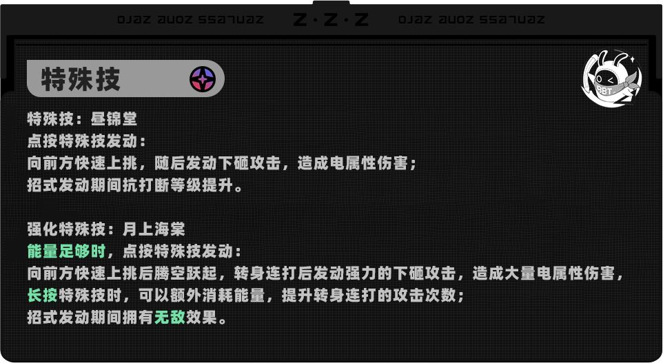 长按特殊技可以额外消耗20点能量,增加空中攻击的段数,加快「闪络」值的累计。