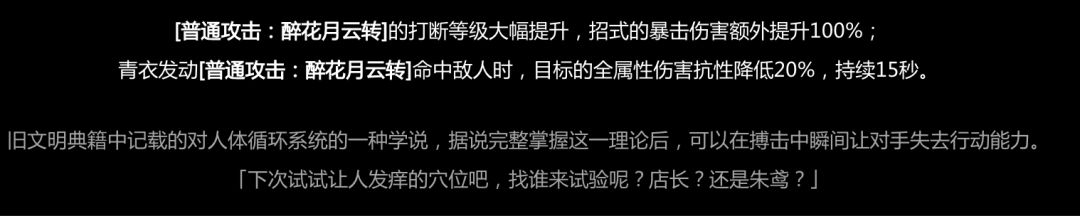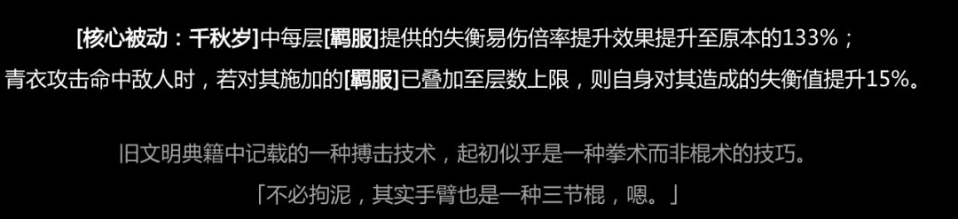 同时增加青衣面对高失衡条敌人(周本BOSS等)时的失衡值积累效率。