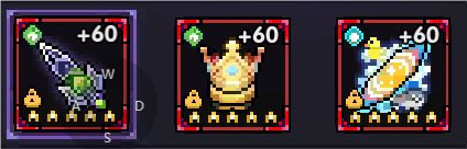 武器卡(左-右):情缘古辛、传说勇者-术、烈焰龙皇