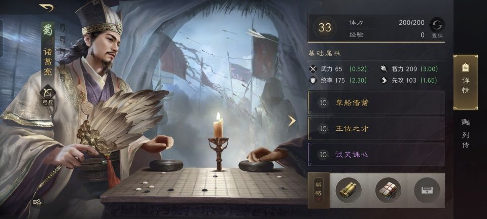 相比起大乔的各种后勤兜底和气氛烘托,同样身处前排的黄盖则完全倾向于进攻。在苦肉计的基础上,黄盖的第二和第三战法分别习得了指点乾坤和如有神助,威帅善本和鬼谋手抄,构成了他的韬略库。由于如有神助的加持,黄盖所带的两个主动战法苦肉计和指点乾坤的发动率都被提升到了58%。大黄猪里智力最高的角色是诸葛亮,他打出的兵刃伤害是很低的,故而黄盖通过苦肉计发动的火攻,成本亦是忽略不计。诸葛亮兵刃打黄盖几乎不怎么掉血,然而谋略火攻打对手则是相当炸裂。