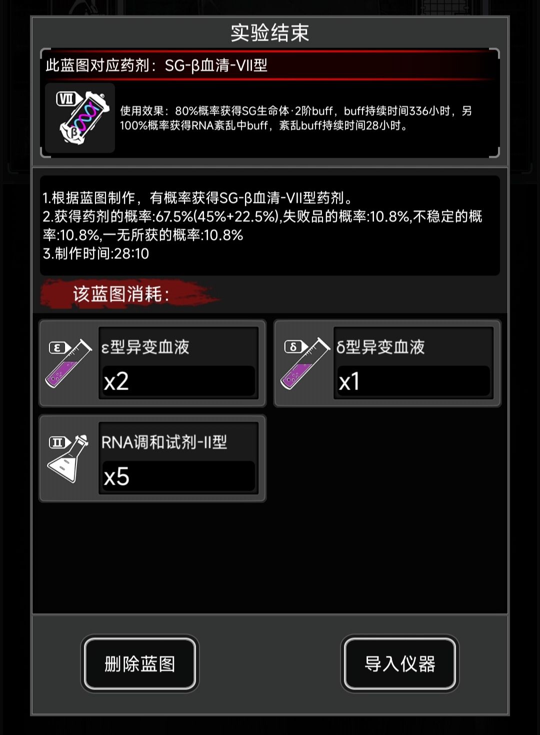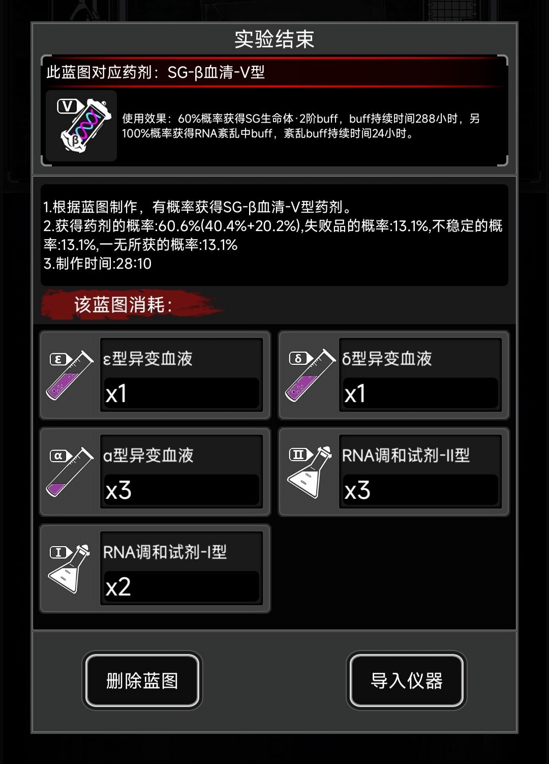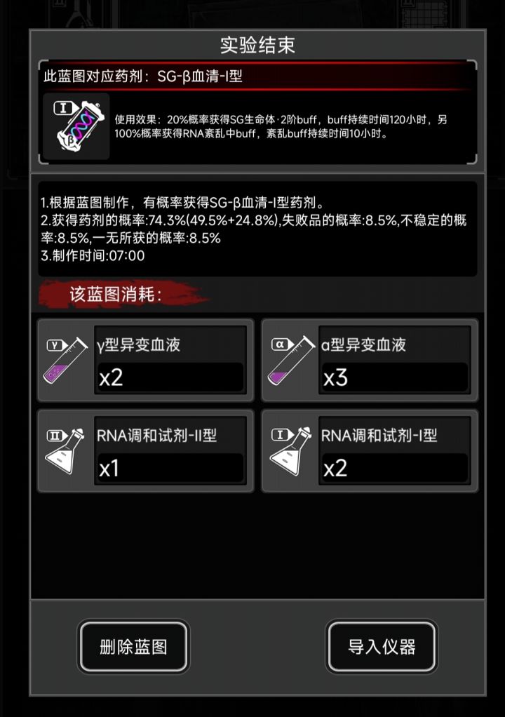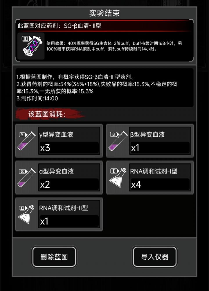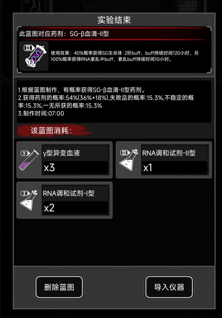 如果天赋低觉得制作成功率太低可以加浓度,比下一级36成功率的蓝图浓度低就行。每种使用一次足够开下阶段,如果资源充足或者着急需要更高级药建议全失败一次开下阶段。否则还是全成功,练熟练度。