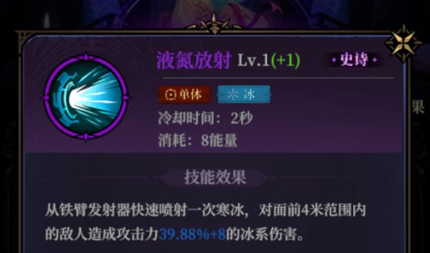 液氮放射:魔像大师的中期选择之一;小范围性的伤害法术,升阶后额外增加伤害方向,还能施加寒气的defuff效果。