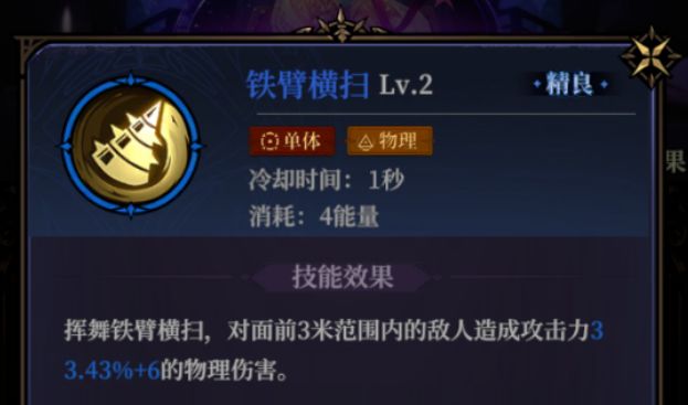 铁臂横扫:魔像大师的初期选择之一,升阶后能额外增加伤害,还能施加撕裂的debuff效果。