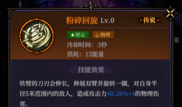 粉碎回旋:魔像大师的后期选择之一,大范围性伤害技能,升阶后能施加流血的debuff效果,还能提升法术的伤害效果。