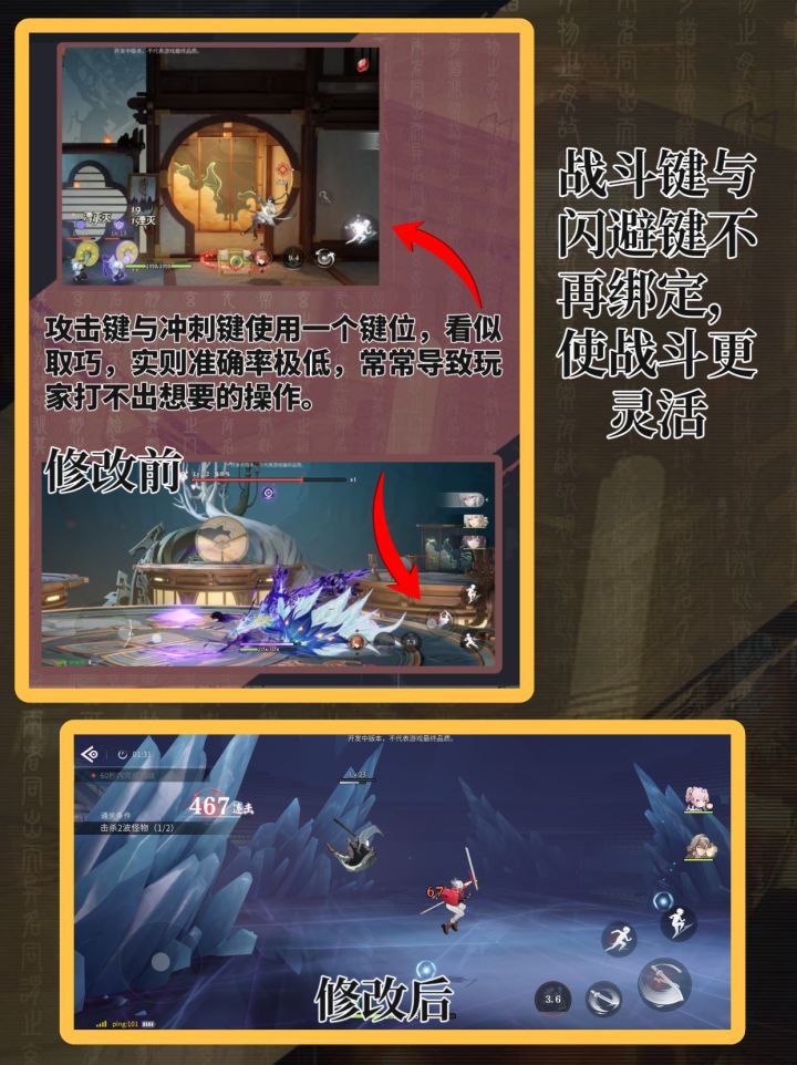 另一直观感受是战斗系统重做,攻击与冲刺不再绑定同一按键,不需要再担心误操作与挡身位问题。在战斗机制上,将原本繁琐的元素反应去除掉,加上简单粗暴的消韧进虚弱,新的战斗系统让战斗更灵活更爽快。
