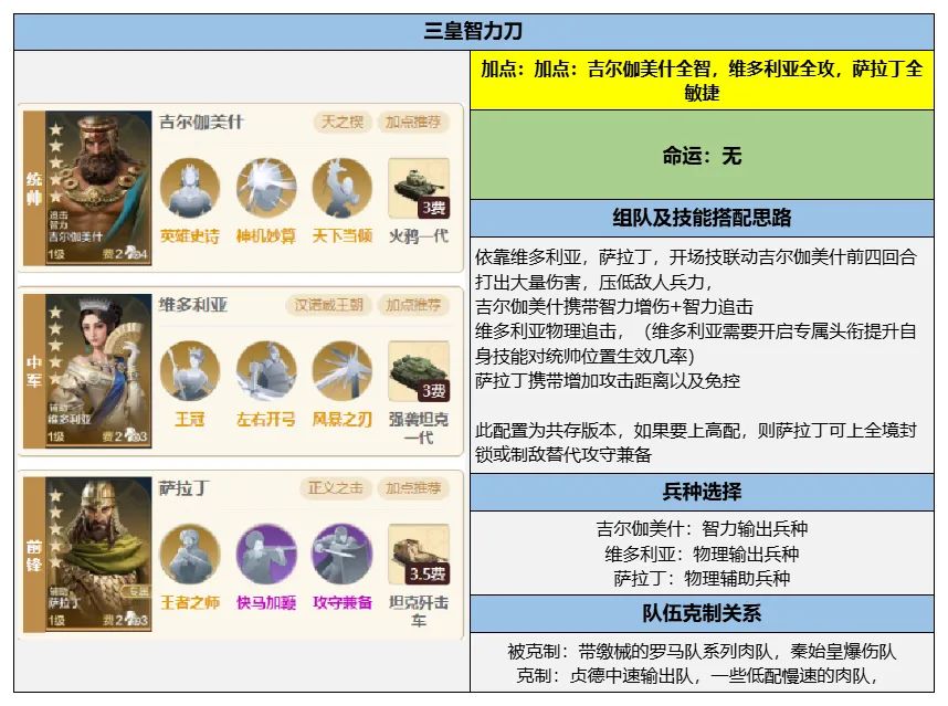 适配体系:配秦始皇+风琴火炮可组爆发追击体系,不适配萨拉丁。