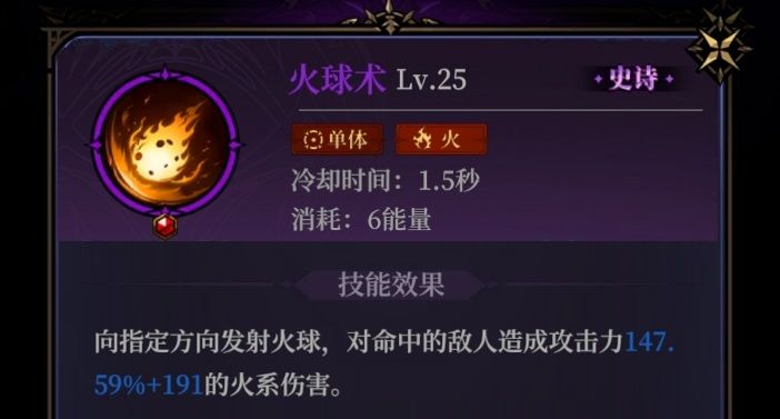 火球术:火系的直线性伤害法术,升阶后不仅能增加小范围伤害,还能增加给敌人上debuff的效果,而且冷却时间极短,在心得槽上几乎可以做到无缝衔接。