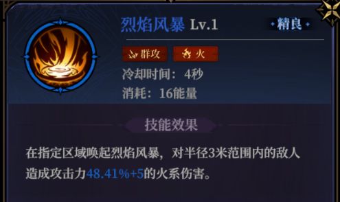 烈焰风暴:小范围伤害法术,升阶后不仅能增加给敌人上debuff的效果且高阶概率较高,还能增加持续伤害效果。(火系伤害的入门法术)