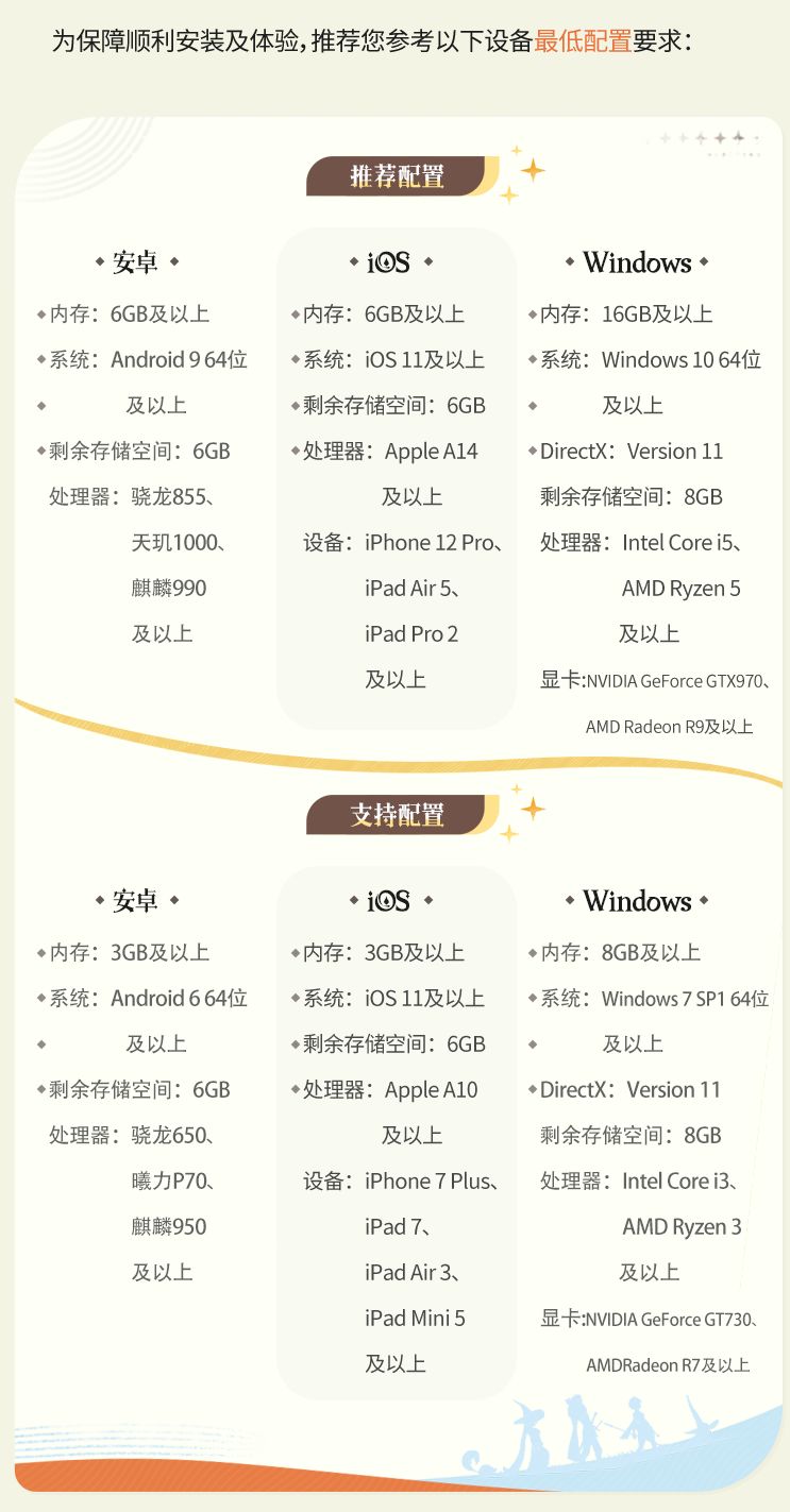 为保障顺利安装及体验,推荐您参考以下设备最低配置要求: