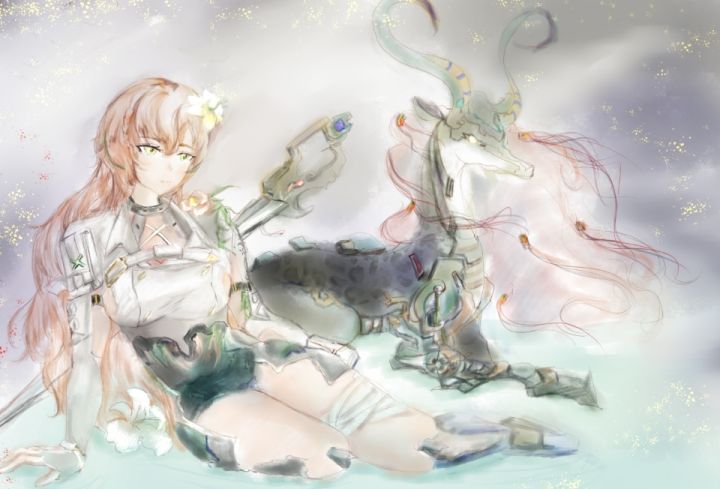 稍微解释一下吧,画的艾玛,背后是武器,旁边是辅助机。