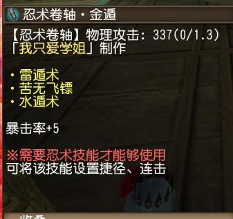 卷轴技能要求带,苦无飞镖+水遁术,如下图所示