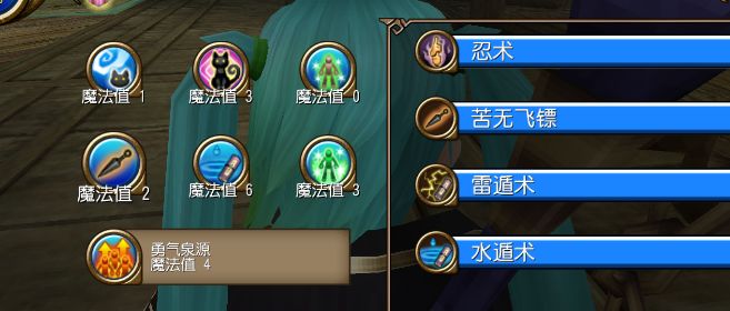 连点设置:水遁——苦无3下——魔充——魔灌,时间自己调整,可以加入勇气,或者暴风雪进去