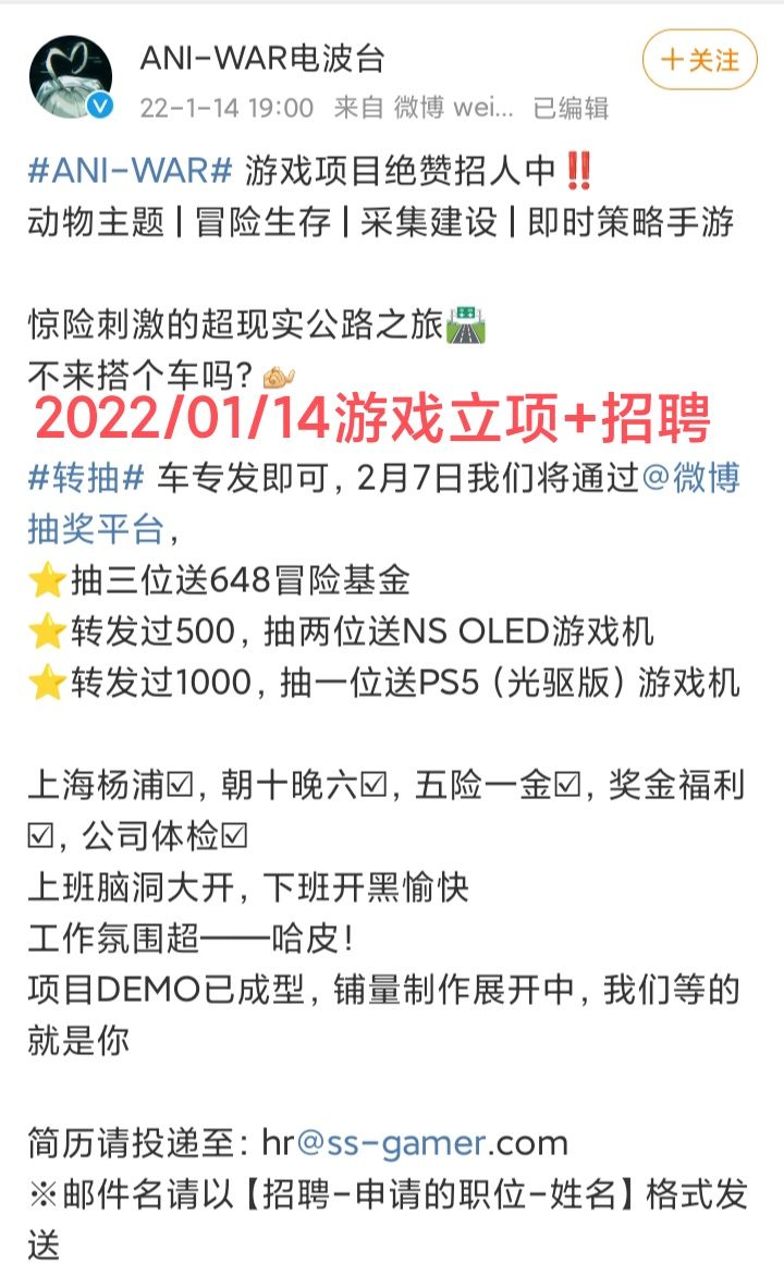 该游戏在2022年1月开启立项招聘,距今被终止研发,仅存活两年半