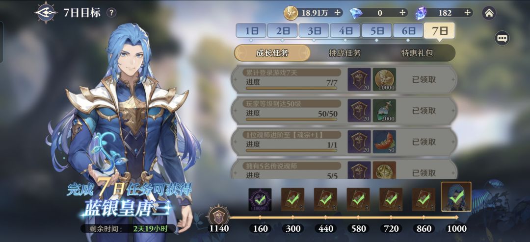 如图,七日奖励都拿满了,单单说这个活动,对于平民和零氪都是一点难度没有的,轻松拿满奖励,把唐三带回家。顺带一提,相比这个活动,帝师挑战,异宝寻踪等氪金活动还是没有很强的参与感,这个活动平民微氪还是有些难度的(仅提到但不做批评)。