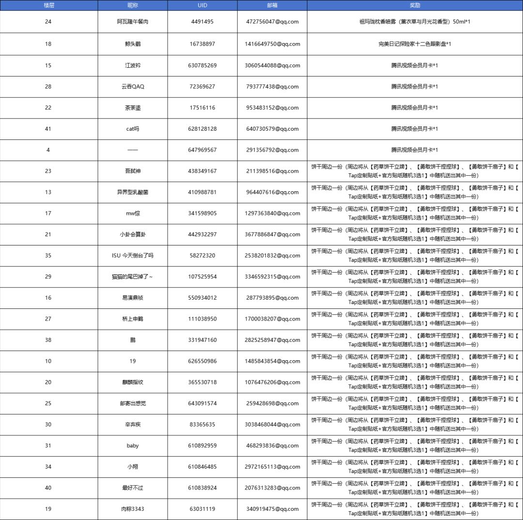 获得实物奖励的饼干朋友在2024年9月12日24点前用参与活动时回复的登记邮箱将【活动名称】【社区昵称】【自进入Tap社区至点击进入个人主页的录屏】【参与活动评论截图】(缺一不可)以及收货人电话,姓名,邮编,详细地址发送至邮箱chesuant@qq.com,邮件标题设置为【TapTap社区+个人社区昵称】逾期视为放弃。