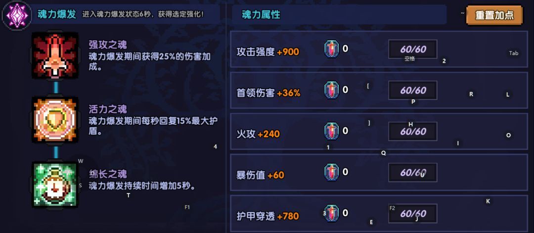 ②魂力属性:优先点 首伤 护穿 暴击值满足副本属性要求后,再去点爆伤,火攻,攻强。