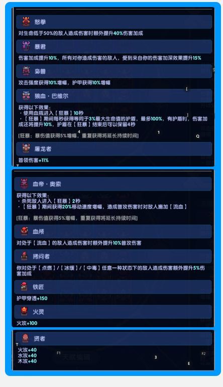 ①混伤职业大多数情况均选择-全伤加成;第二个 不要选挡子弹,影响吃易伤天赋绵长之魂(延时5s)