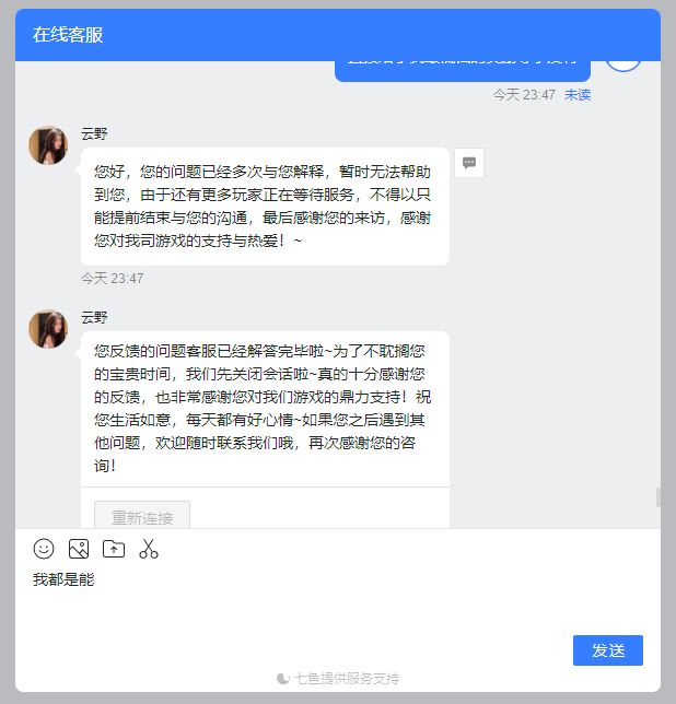 前段时间在外地度假,路上打打组队挑战,可能是网络波动的原因经常掉线,前前后后吞了我七次组队奖励。后来才了解到可以跟客服反馈,排了三个小时的队伍终于到我反馈问题了,客服说有补偿几百阅历,可是正常打完怎么说都有一点命格狗粮,问了一下能不能返还门票就直接被挂断会话了