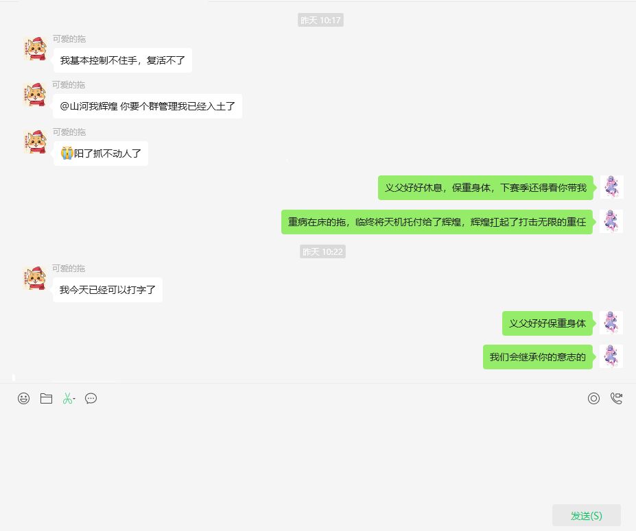 急报:两天前拖手指不可屈伸,已步入icu,在病床上苟延残喘。时至昨日,受天命所佑,病情好转致使手指可以活动,强打精神,对辉煌布下遗诏: