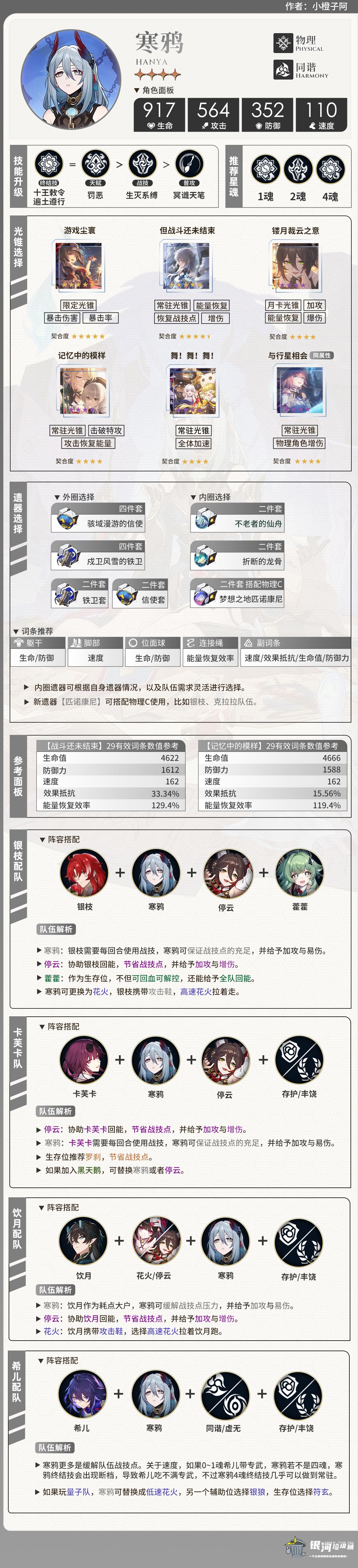 这一期是2.4上半UP的6位角色:云璃、巡猎三月七、藿藿、寒鸦、驭空、玲可一图流。