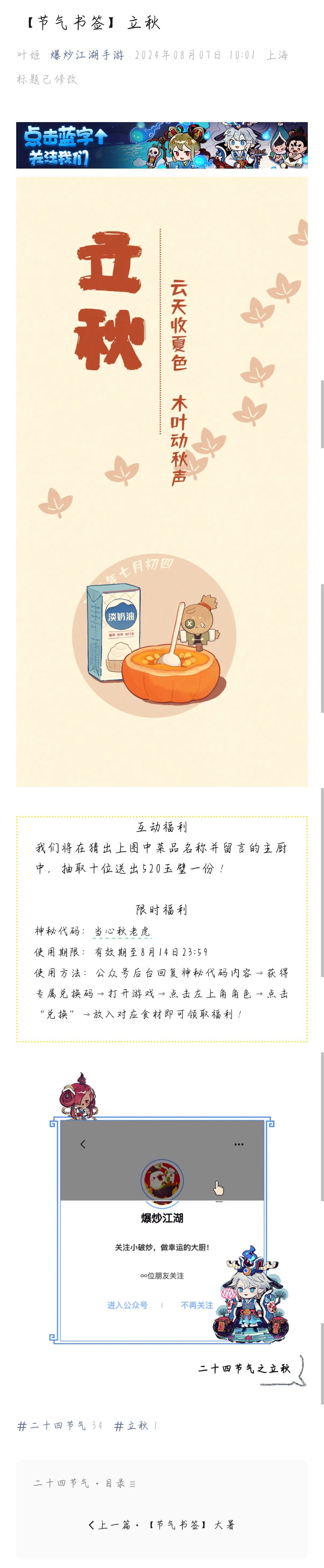 今日立秋,神秘代码:当心秋老虎!