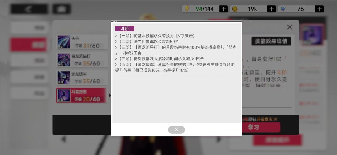 技能进阶这个嘛有好有坏,萝卜青菜各有爱。技能等级每十级强化一次系数,潜能升星所带来的质量碾压在前期也看不出来。因为等级不够,毕竟在原著里也没有50级就开满级大招的情况。但氪佬氪金的游戏体验后期该有还是有的。或者出个修正场出来。