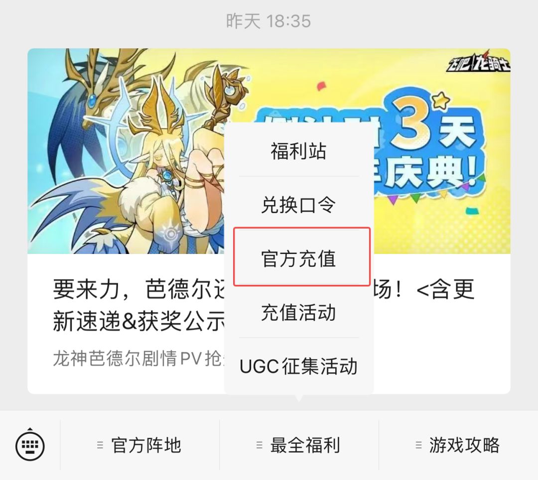 2、通过官方微信公众号菜单栏【最全福利-官方充值】