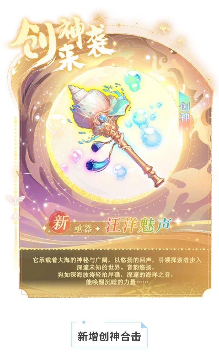 新增创神资质亟器“汪洋魅声”;拥有侍从帝鲲泷,额外激活属性:攻击力+30%(仅佩戴者生效)