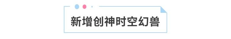 1、新增创神资质时空幻兽:炫逸独角兽,在战斗中通过时空之临同时召唤出时空幻兽炫逸独角兽助战,炫逸独角兽会随着等级出现外貌变化(创神资质幻兽有6个形态)