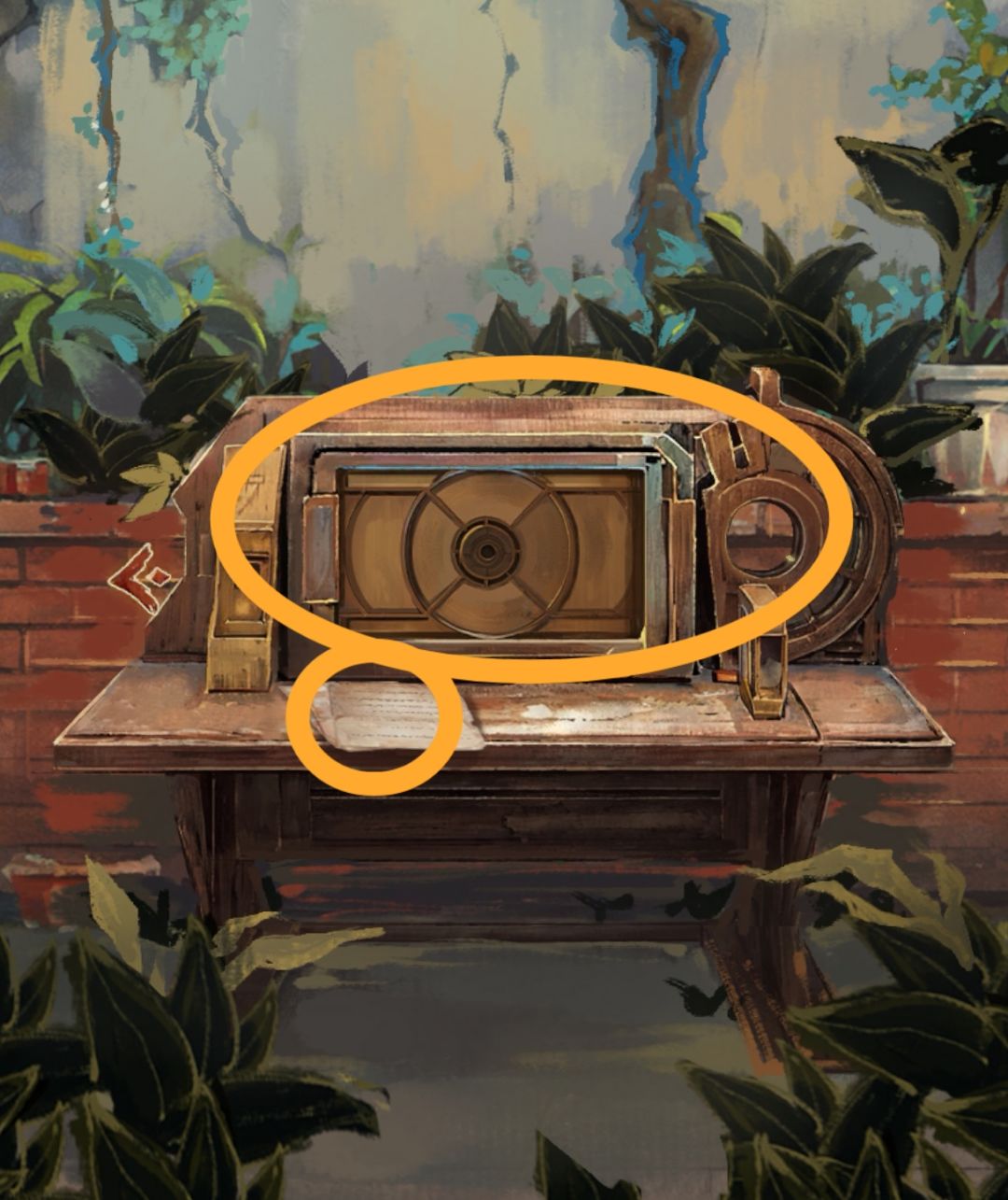 从公告栏下的笔筒中拿取毛笔,给门旁边的镜子化出窗户,打开窗户从窗台上获得小铲子。