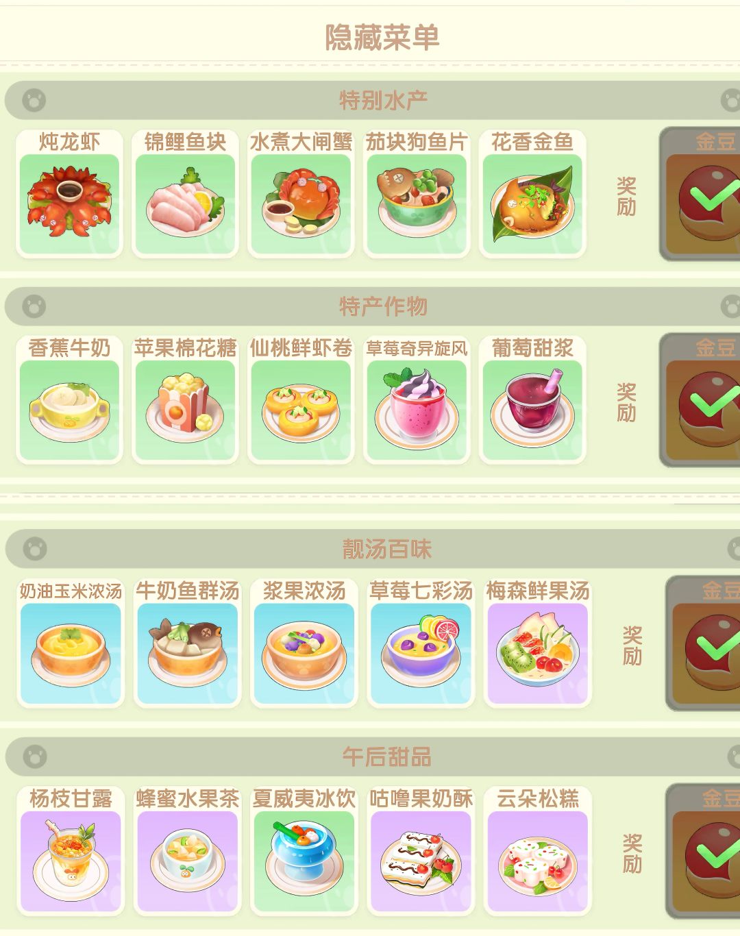 ⚠️九大隐藏菜谱首次制作可获得【50金豆】