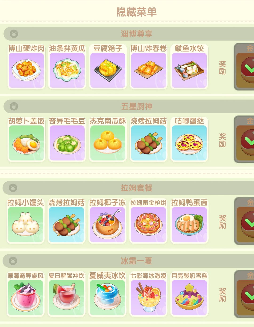 (稀有菜谱用于解锁图鉴以及制作隐藏菜谱)