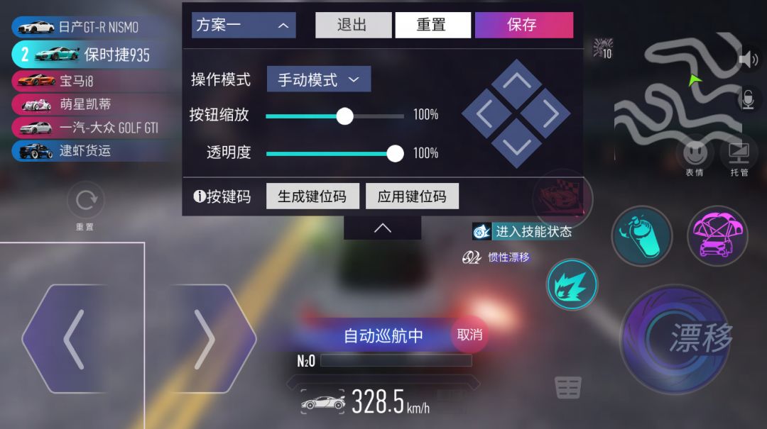 键位码新增键位码功能,车手们可以在操作方案界面中生成记录了配置信息的代码,复制后在游戏中应用即可快速还原对应键位啦1、生成的键位码将自动复制到剪切板中,可以自己记录或分享给其他车手。2、部分设备可能因为分辨率问题会有差异需要再次调整。3、三个操作方案的键位码相互独立,可以分别生成、应用不同的键位码。
