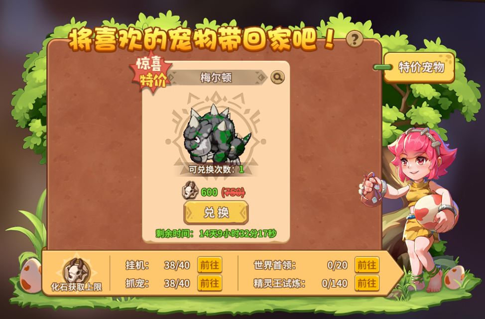 ①超人气宠物:4000恐龙化石;8月20日前享75折优惠,3000恐龙化石即可拿下!②人气宠物:750恐龙化石;8月20日前享8折优惠,600恐龙化石即可拿下!