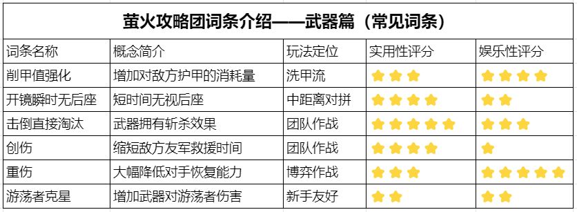 特殊词条全掌握,对拼思路更清晰!局面不同,也有更加适应的武器词条,有些擅长破甲,有些擅长狙杀,搭配自己的游戏理解即可开拓出属于自己的打法。本期萤火攻略团将给大家讲解武器常见的特性词条和玩法(击飞背包、耐力扣除等见下篇),帮助各位萤火虫了解各种子弹特性,开拓有趣的玩法!