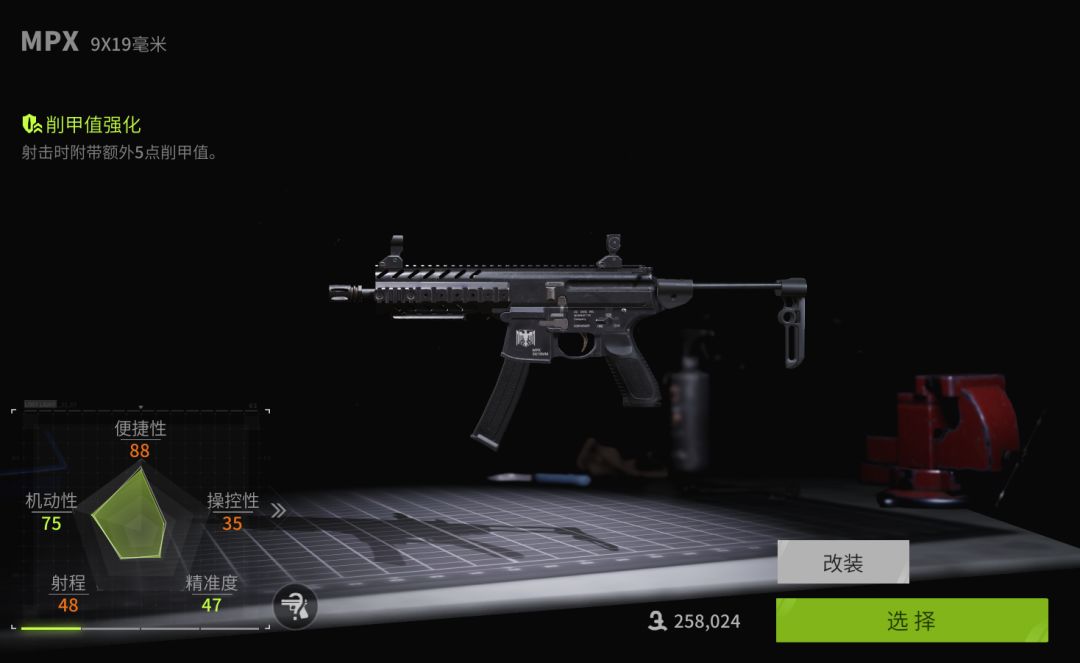 削甲值强化的属性来源于枪械配件中的枪管,可以对护甲造成5点的额外损耗,配合破甲弹可以快速洗甲,主流玩法是洗甲流Vector,携带破甲弹、叠加削甲值强化的Vector可以凭借自己超高的稳定性迅速突破高级甲的防具完成击杀。MPX射速提升前射速一般,所以并不如Vector实用。