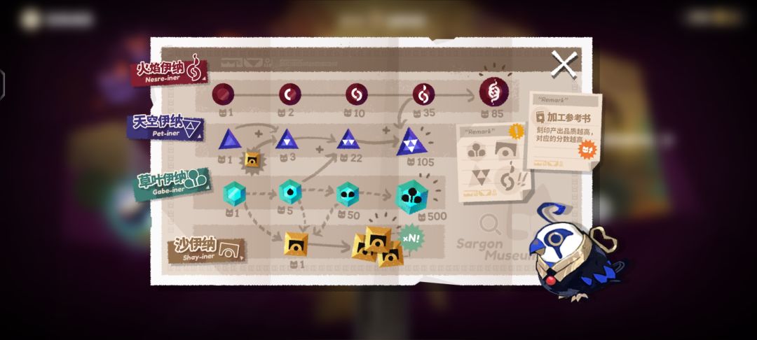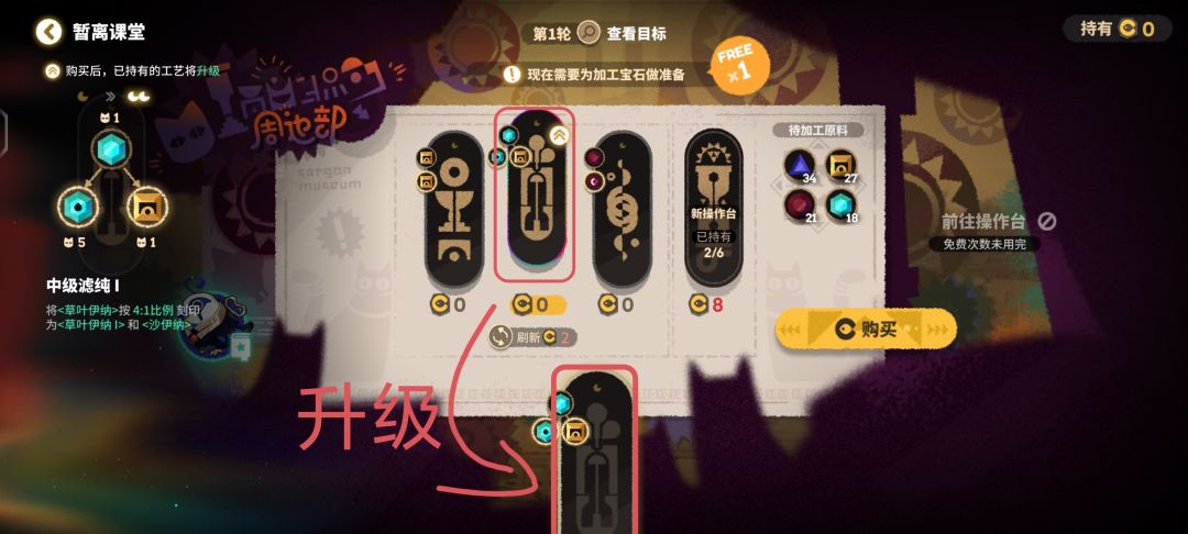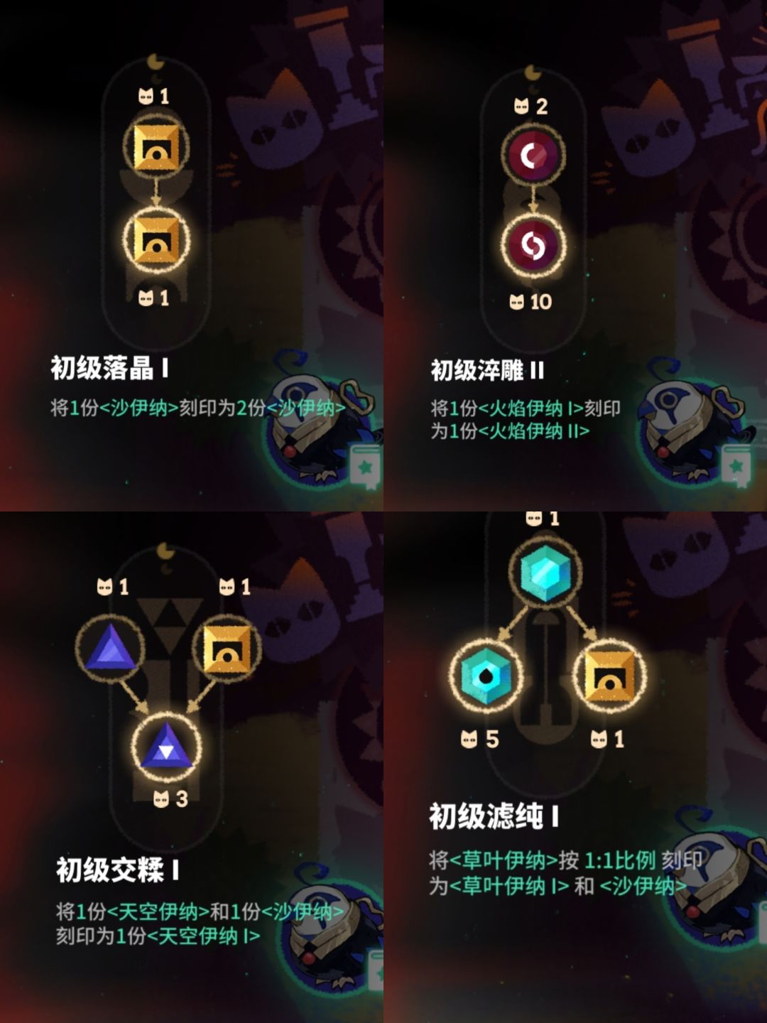 转换:左上两个宝石,将一个宝石以某种关系转换为另一种宝石。(如将1个A宝石转换为2个A宝石,或将1个A宝石转换为1个B宝石)