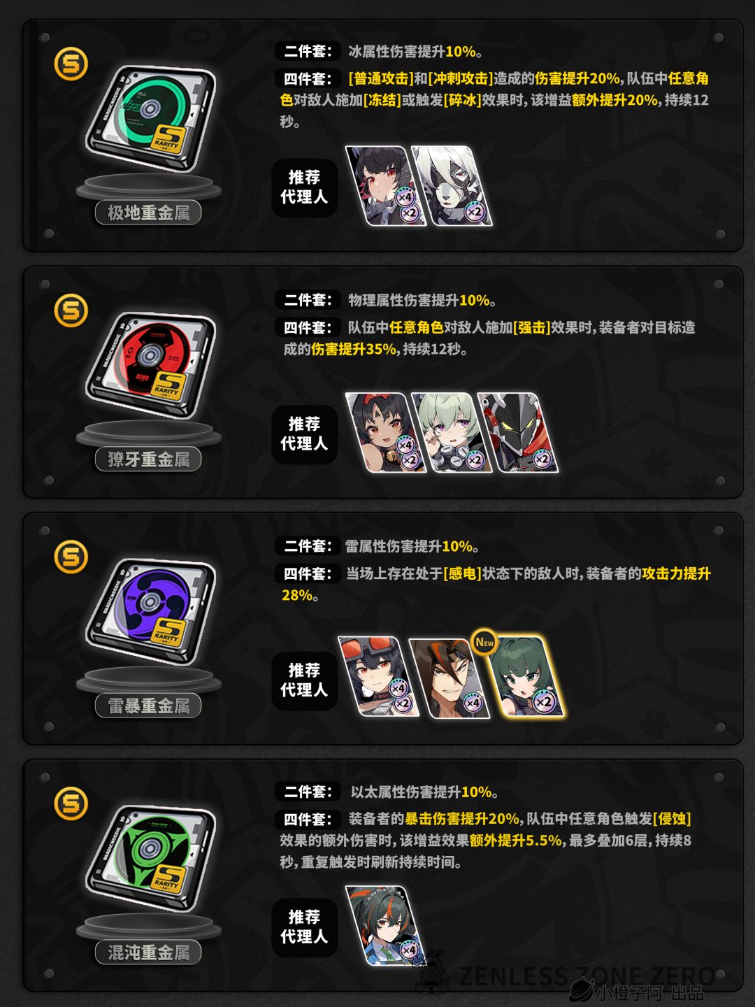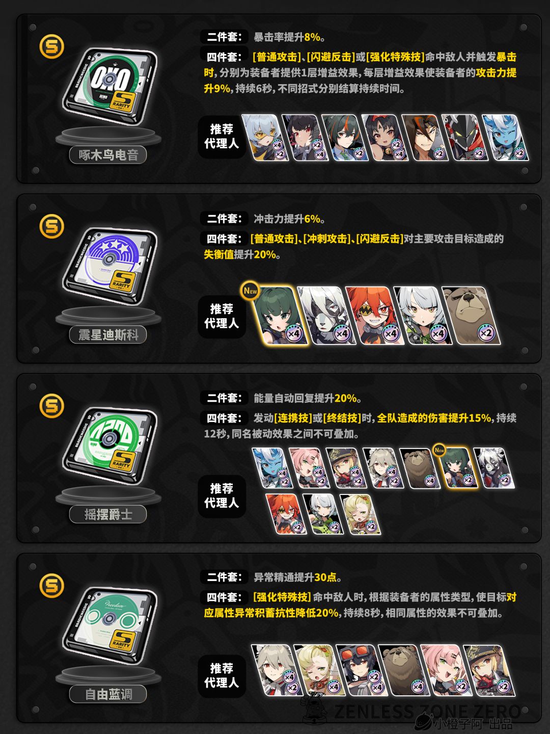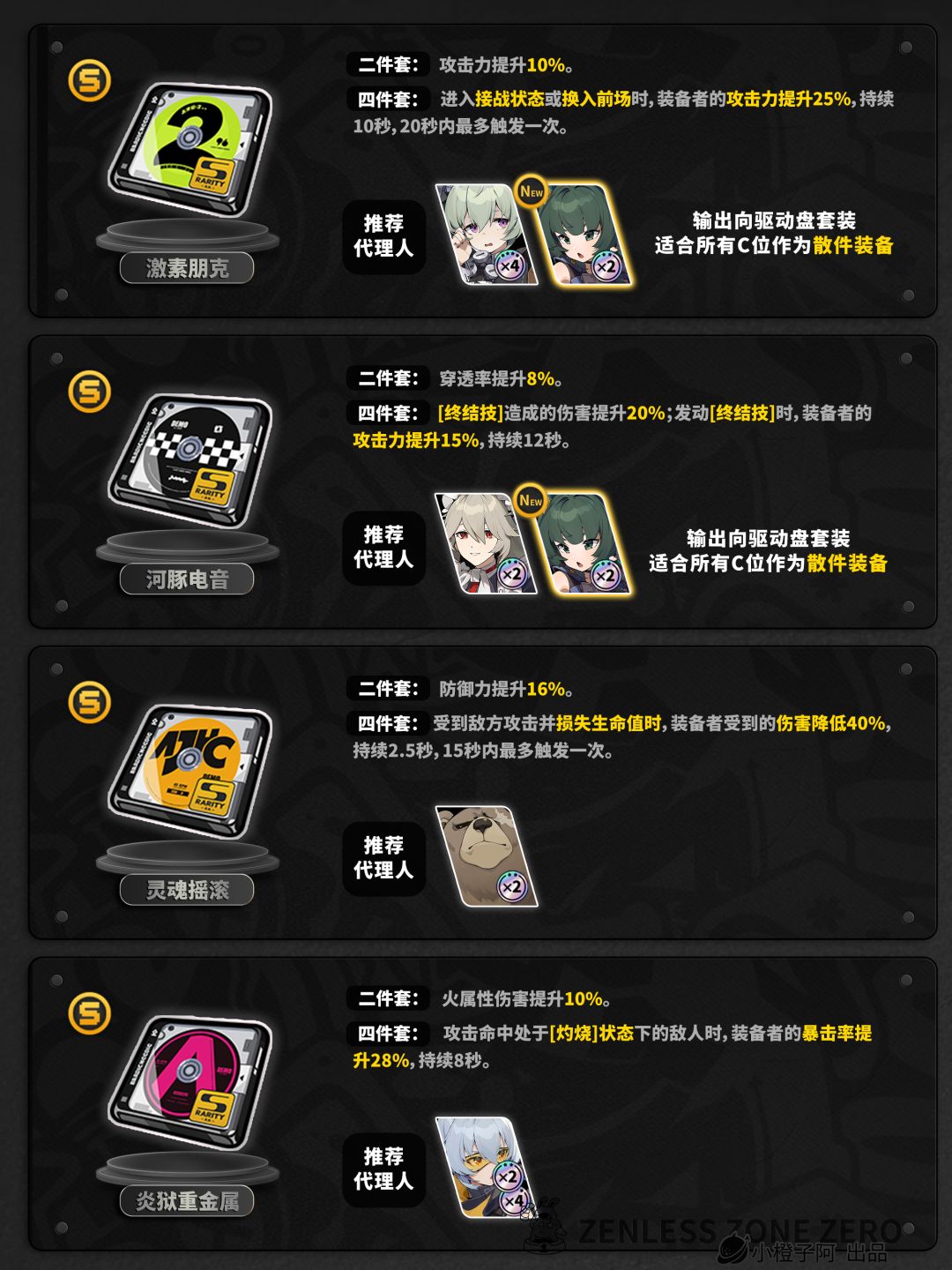 2、有的角色“×2”或者“×4”标识存在多个驱动盘上,小伙伴可根据自身驱动盘情况合理去选择即可,它们互相为平等关系。——比如“青衣”二件套可选择“激素朋克”“河豚电音”以及“雷暴重金属”。