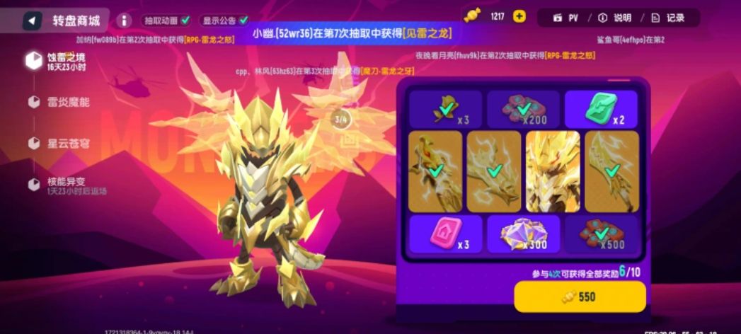 ◆我只能说转盘这东西纯属看各人运气up主幸运的转盘也就是【雷霆之龙】了六发出了三个最黑的就是第一个转盘皮肤【星云苍穹】那是真的黑啊前面愣是一个没有抽到我真的 无语 这个转盘