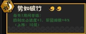 单独使用时,由于用间等级的限制在,很难触发政策的上限,强行搭配用间流,目前并没有看出有什么特别出彩的地方,大部分情况下以满足一政策的4用间等级来考虑,只能获得4点攻占进度与16%的军规,效果只能说中规中矩吧。(在部分容易获得用间等级的红利剧本另说)