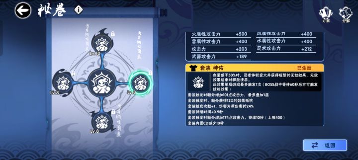 ——秘卷养成一般赌8级属性,不是攻击、忍术、武器的词条,基本可以扔了(你喜欢跑竞技场的话可以留得分词条)。最优词条搭配是4条攻击(会直接加在面板上),次选2条攻击1条忍术1条攻击,次次选2条武器2条忍术。实际上这三种搭配,加成差不了多少。