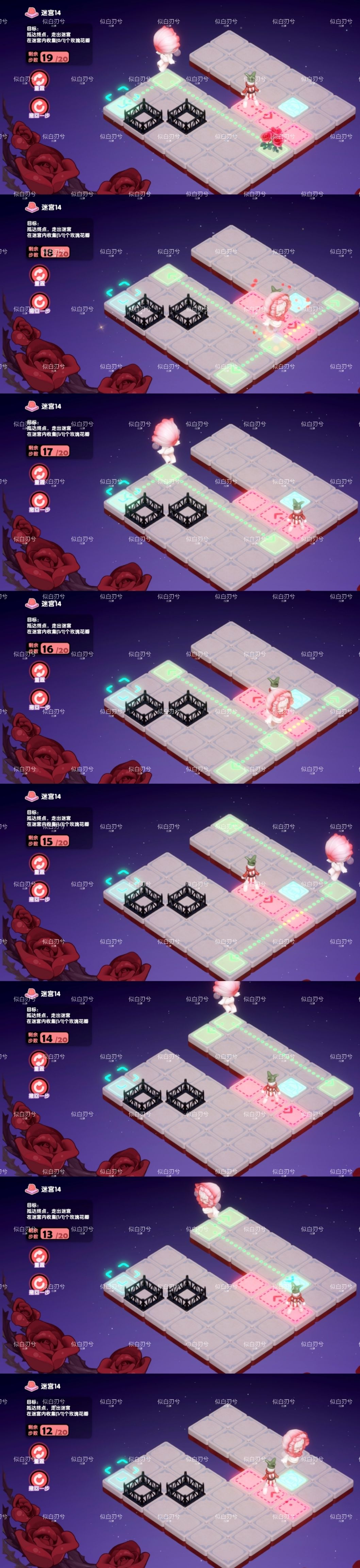 惊奇古堡迷夜花庭活动游戏:深渊回响走法(走步顺序不唯一,有其他走法能过关就行)第二张开始是这五个关卡按顺序的图解前两篇:迷宫初探和幽暗四伏在主页