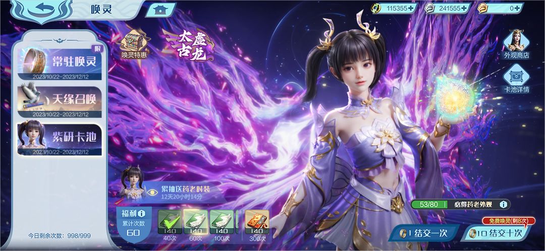 为充分满足各位玩家的需求,本次游戏更新后,将推出【紫研】限时卡池【太虚古龙】,各位斗者可通过卡池获取紫研专属斗翼等好礼。
