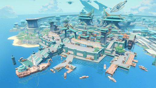 如果想要观看古科技文明的精巧造物,岐下城自然是不二之选咕!在岐下城的街道上漫步,抬头就能看见超——大的机械巨龙呢~