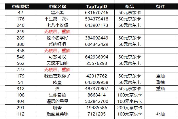 恭喜以上14位小伙伴~请务必在10个工作日内添加工作人员QQ:646620871,提交社区ID、个人信息截图与录屏,我们将在核实您的身份无误后,在30个工作日内发放奖品~这次没有中奖的小伙伴们也不用灰心,下次我们还会举行更多奖品丰富的社区活动哦!说不定下次中奖的就是你~