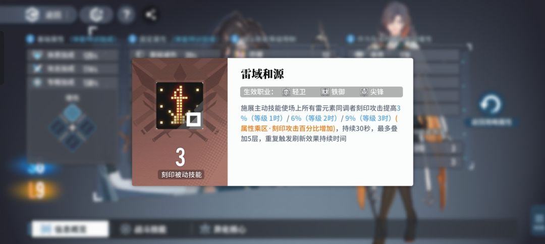 叠满以后5层+45%刻印攻击(乘区和数值都与【底线大作战】一样),且由于叠满需要方块职业30s内施展5次主动技能*(0花景30s能叠3次,1花叠4次),因此需要常驻至少2方块职业在场才能叠满。