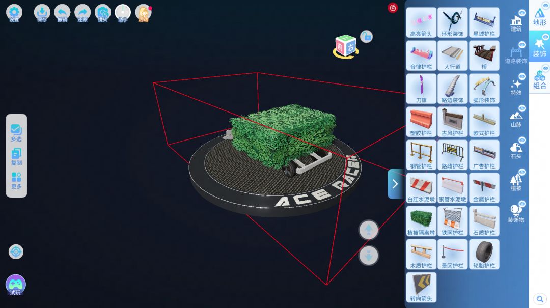 随后车手们就将来到创作界面,与搓图一致的拖拉拽搭建方式可以帮助车手们快速上手。我们也为车手们准备了多种基础图形&可塑图形使用,同样可以自定义组件的色彩与材质~车手们可以合理利用图形组建进行创作。