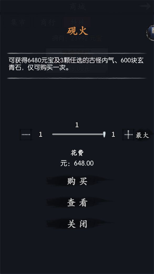 礼包都是一些很超值的东西,最后的648甚至有古怪内气*3自选的奖励